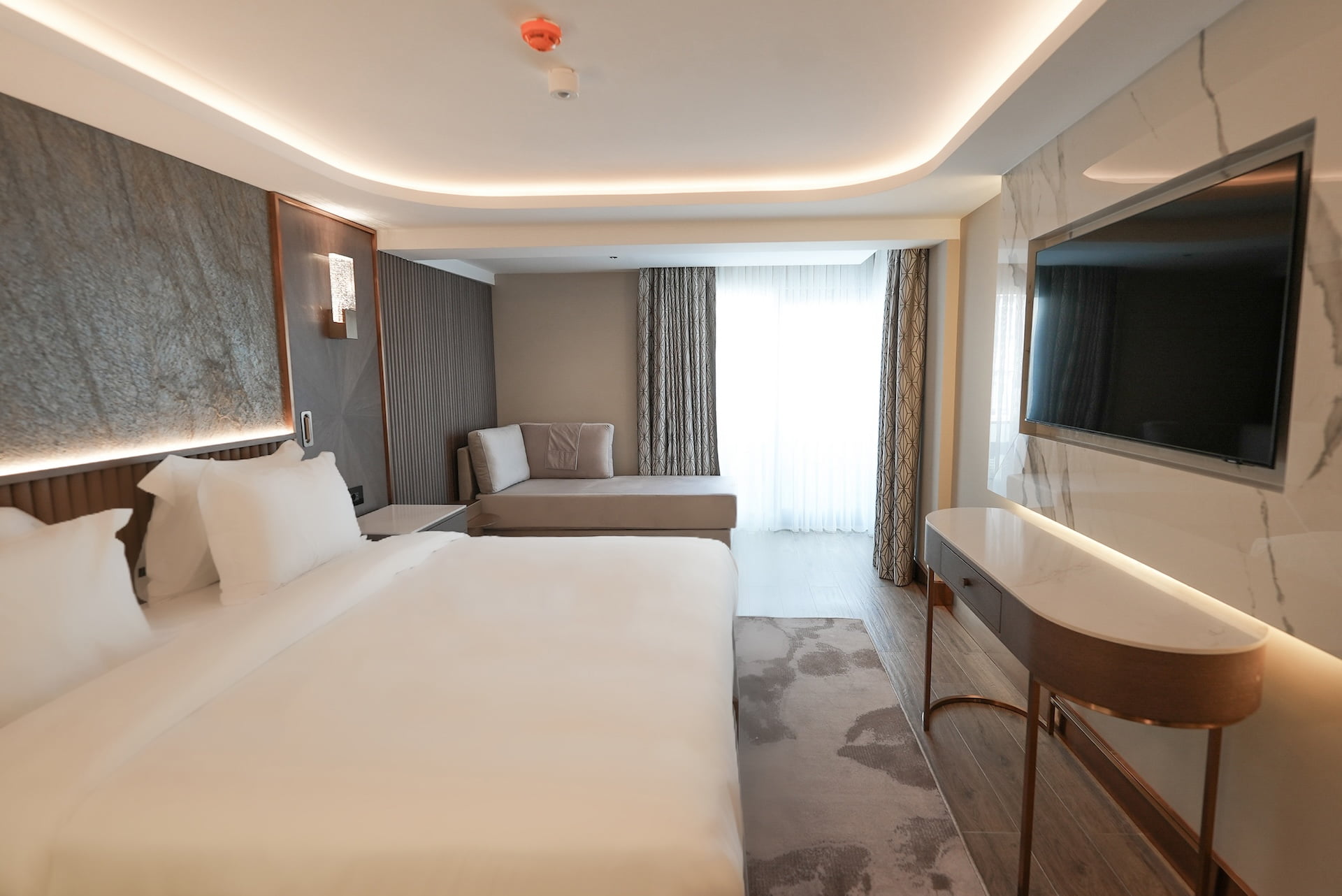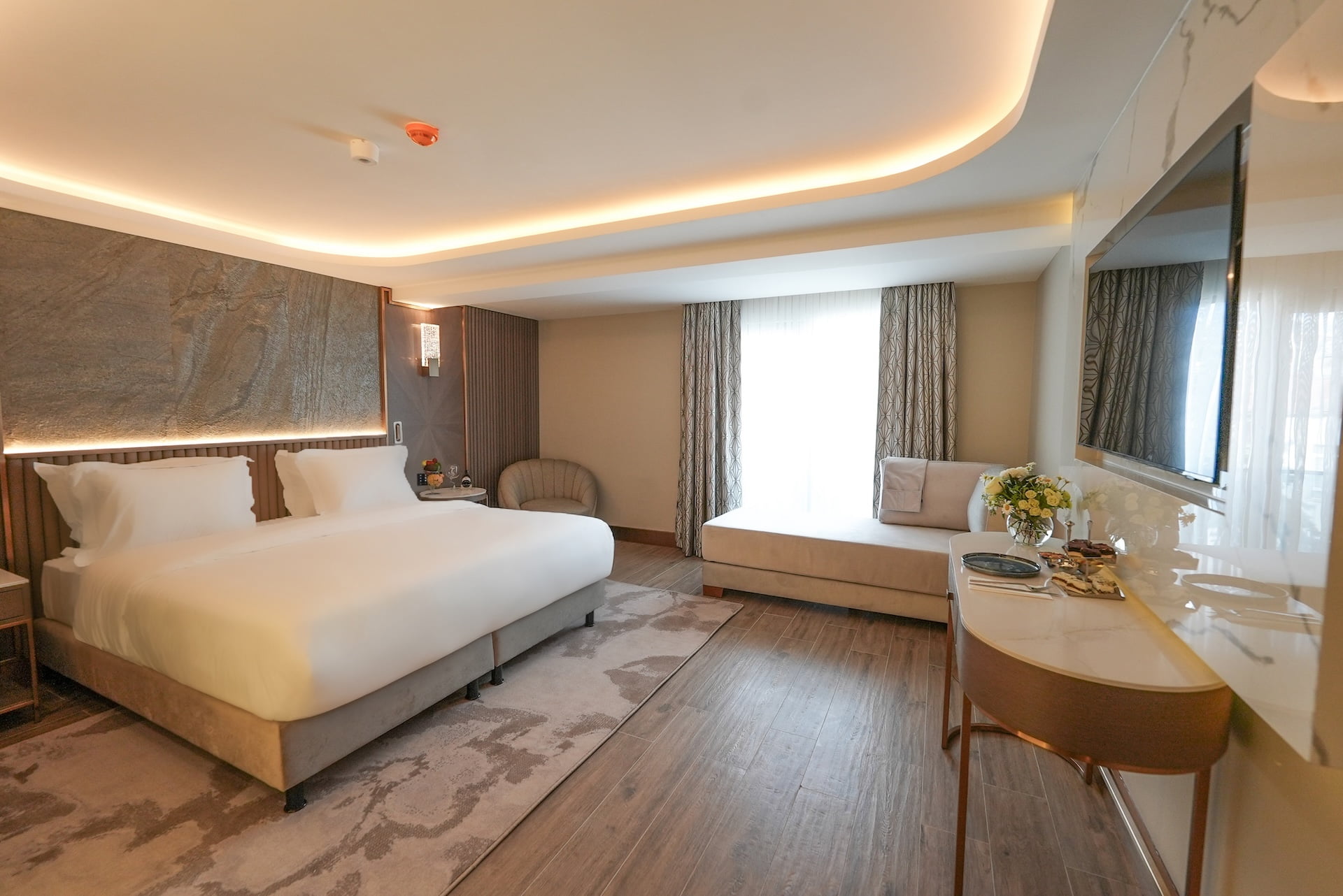 Otelimiz, konfor ve lüksü bir araya getirerek misafirlerine unutulmaz bir konaklama deneyimi sunuyor. Her biri özenle tasarlanmış olan 4 yıldızlı odalarımız, sizi evinizde hissettirmek ve konforun doruklarına çıkarmak için özel olarak düzenlendi.