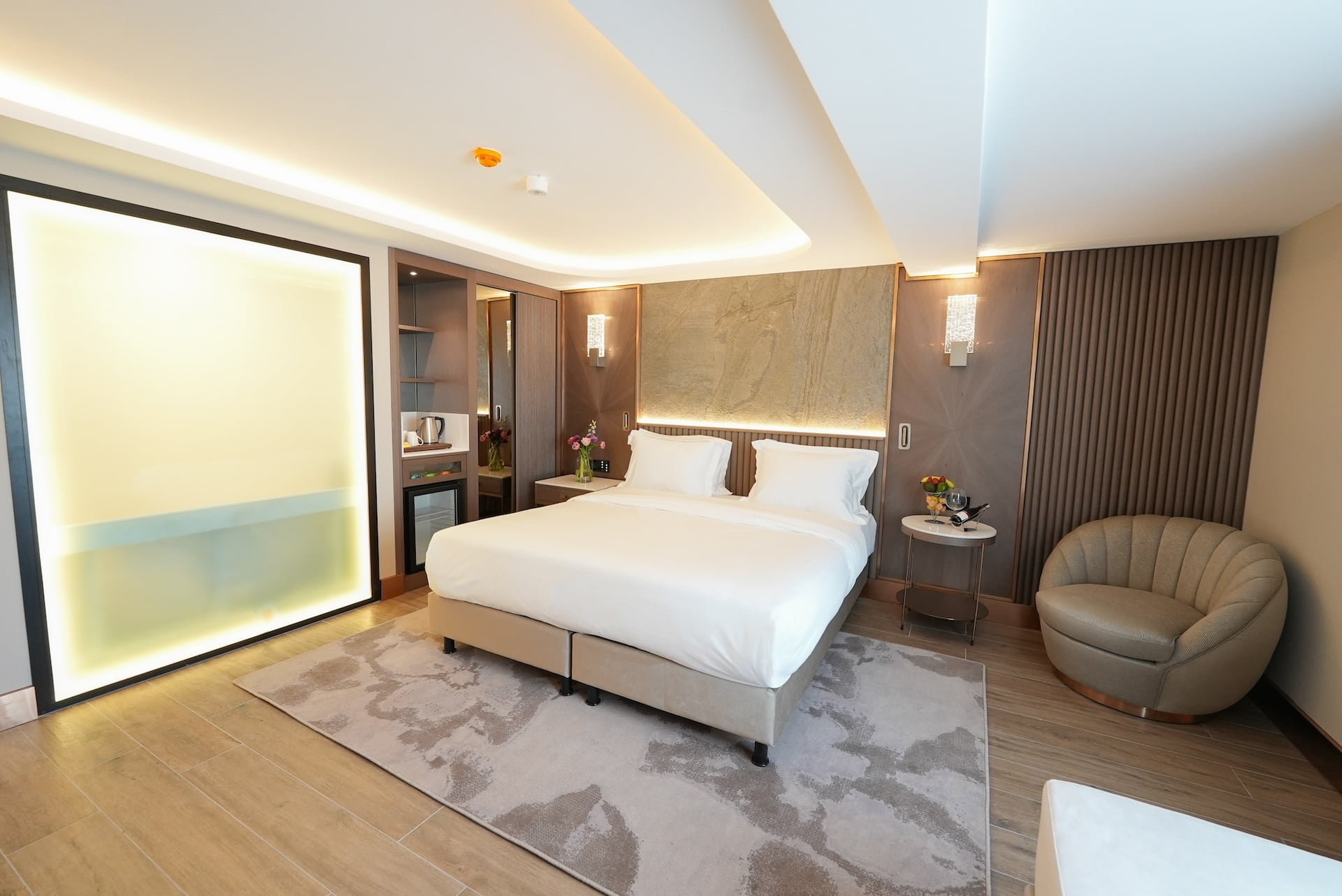 Otelimizin odaları, geniş ve modern bir tasarım anlayışıyla şekillendirilmiştir. Zarif mobilyalar, sade renk paleti ve dikkat çekici detaylar, odalarımıza hoş bir atmosfer katmaktadır. Her bir oda, konuklarımızın konforunu düşünerek özenle dekore edilmiştir.